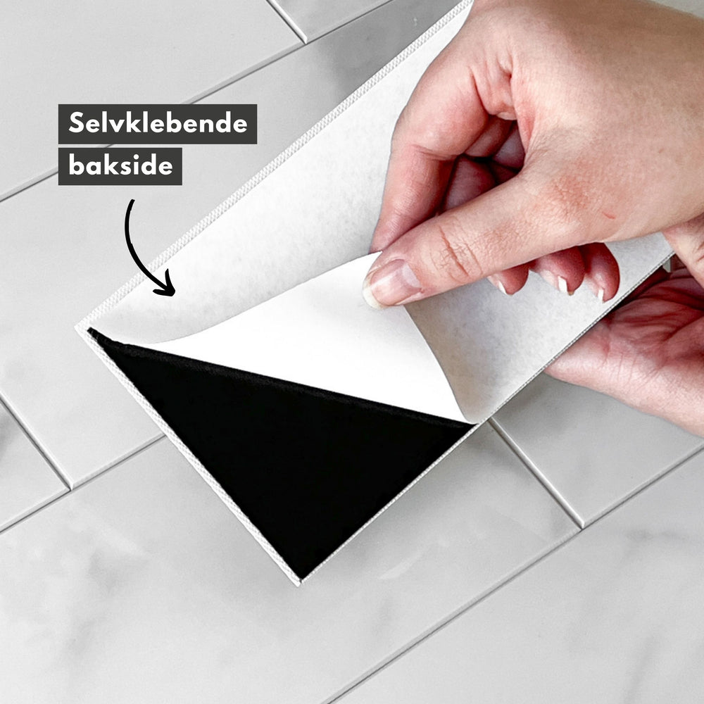 Du sparer både tid og penger med selvklebende veggfliser. Flisene monteres direkte på din eksisterende vegg, og er perfekt som sprutvegg og ellers på kjøkken, bad, vaskerom og gang.