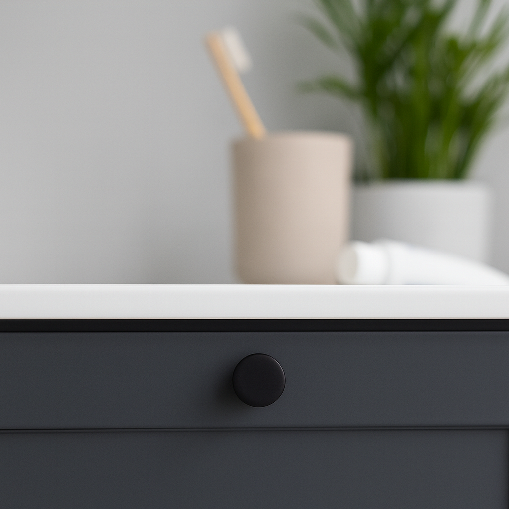 Gi møbler og skap et nytt uttrykk med denne moderne knotten i sort matt metall. Den passer perfekt til kjøkken, bad, kommoder og garderobeskap, og kan enkelt kombineres med ulike overflater og farger.