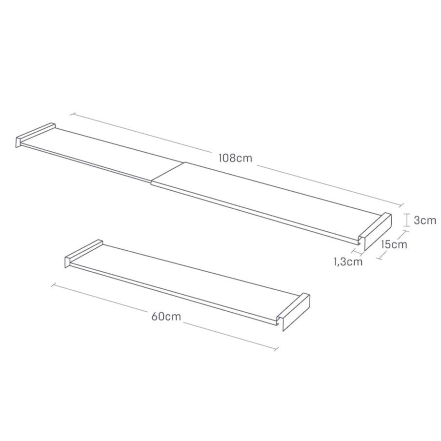 Når hyllen er helt uttrekt er den 108 cm. På det korteste er den 60 cm.
