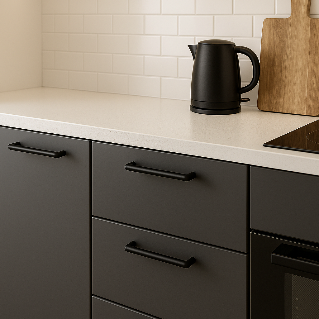 Gi skapene dine en stilfull oppgradering med Madrid håndtak i sort matt. Dette moderne håndtaket kombinerer funksjonalitet med et elegant design som passer perfekt til kjøkken, bad og garderober.