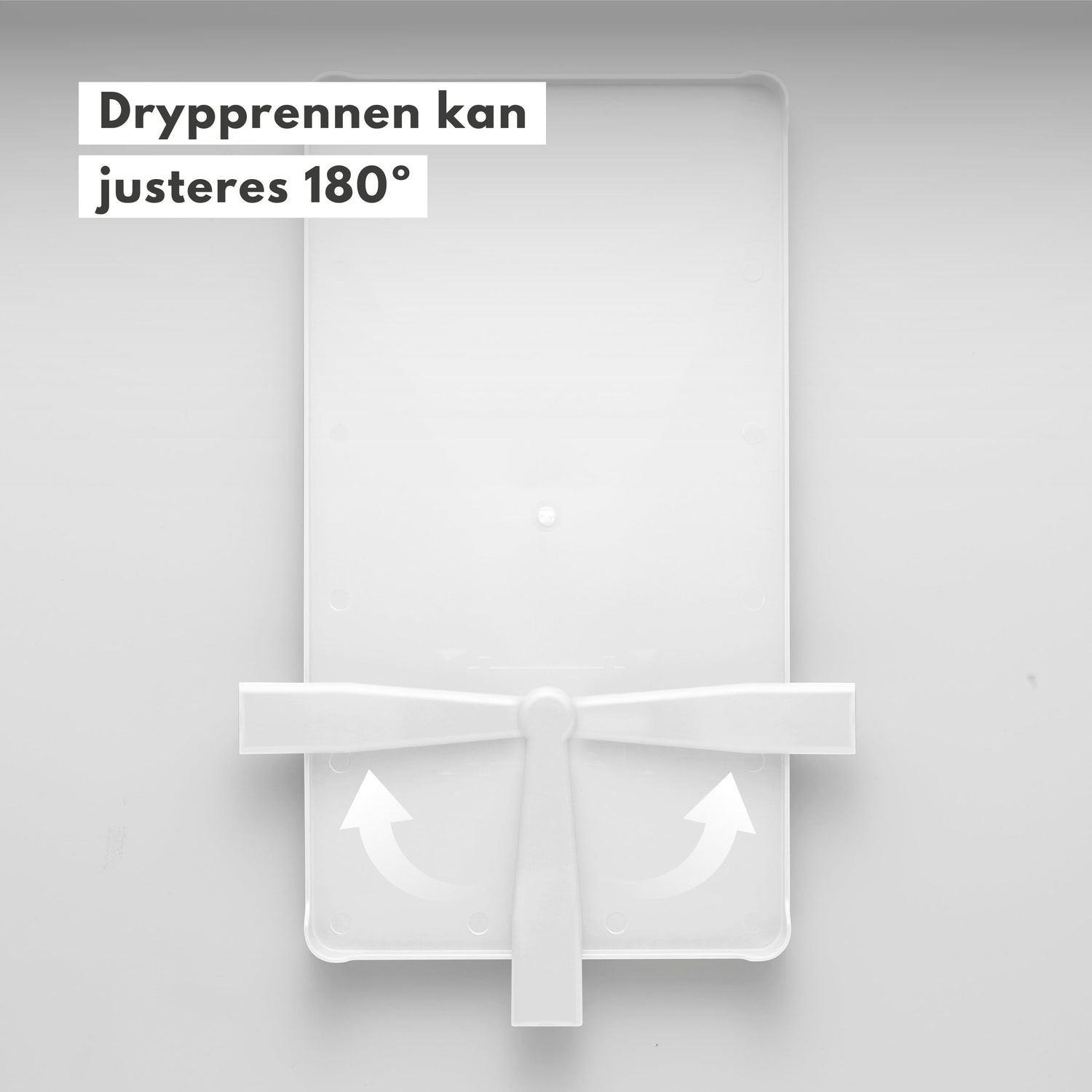 Den smarte drypprennen leder vann direkte tilbake i vasken, slik at benkeplaten holdes tørr og ryddig.