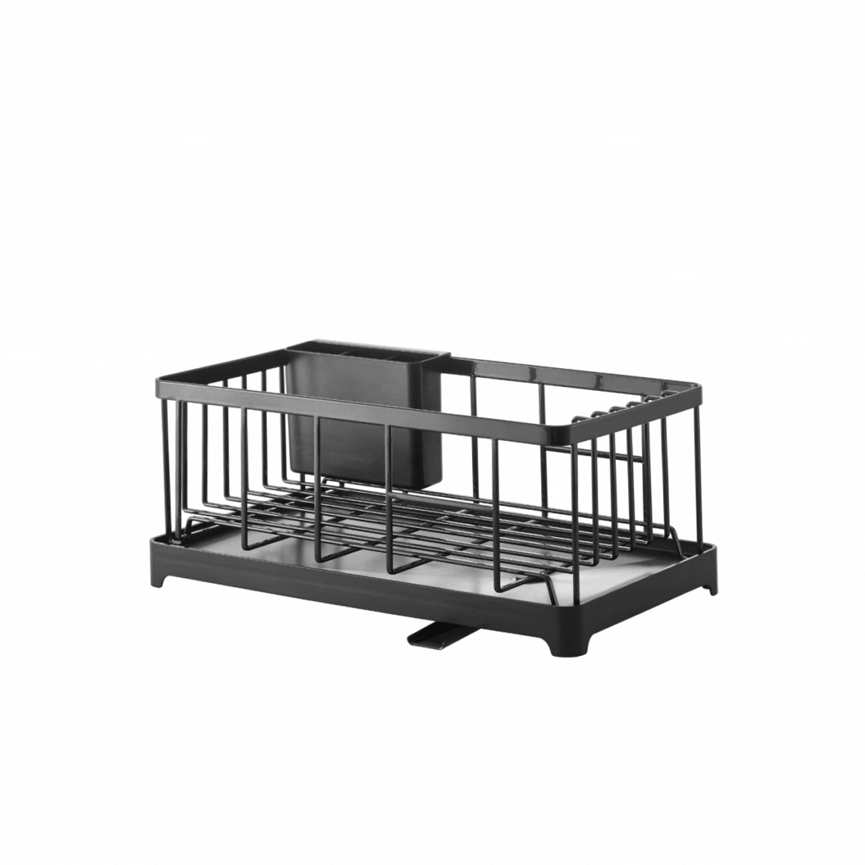 Dette stilrene oppvaskstativet i sort metall gir et moderne uttrykk på kjøkkenet ditt. Med en praktisk drypprenne ledes overflødig vann direkte tilbake i vasken, noe som holder benkeplaten tørr og ren.