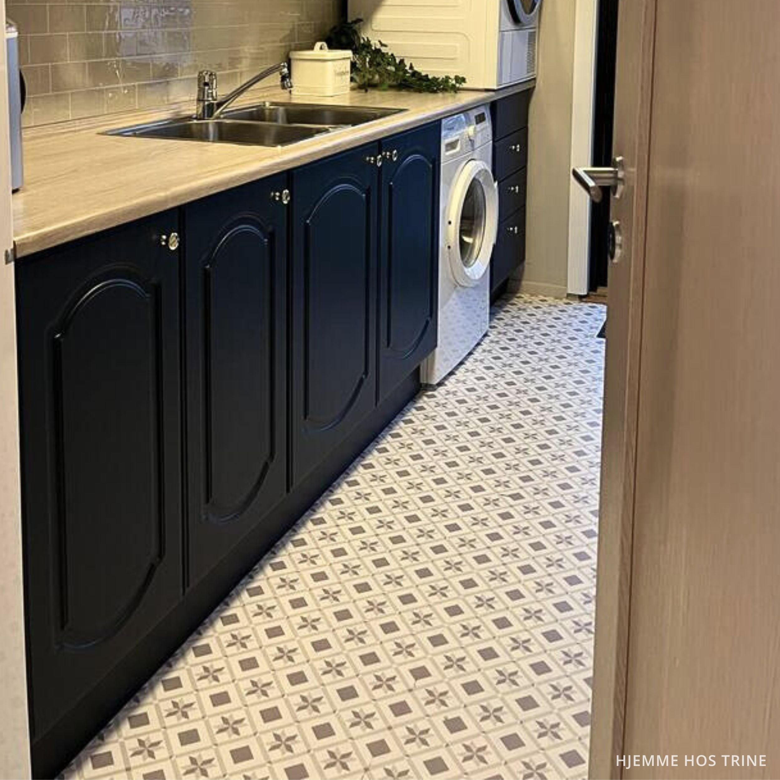 Oslo mini er moderne selvklebende fliser med historisk design inspirert av stjernemønster og flettede detaljer. Flisene passer perfekt for deg som ønsker å fornye kjøkken, bad eller vaskerom uten bruk av verktøy eller lim.