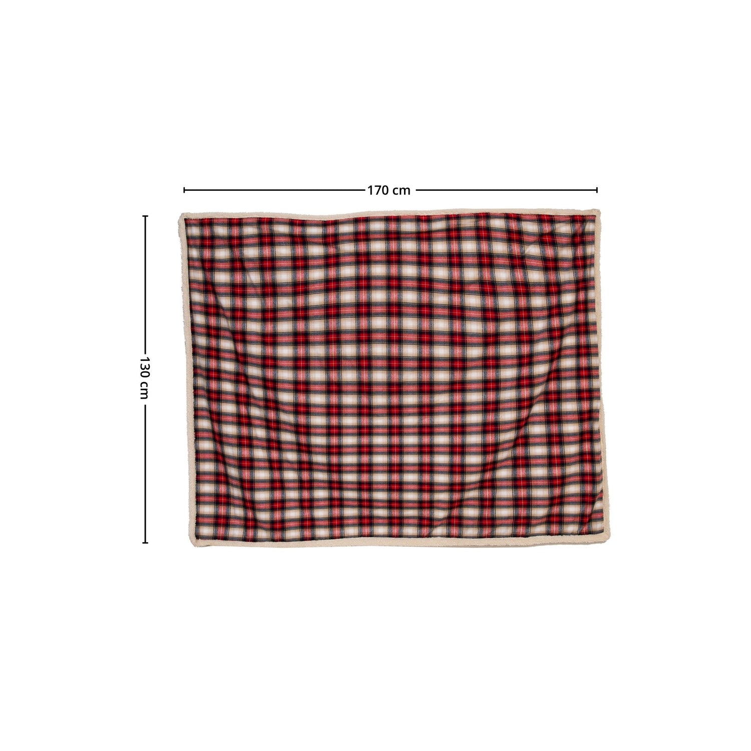 Lun og trivelig jule-pledd i rutete mønster i fargene, rød, hvit, beige og sort. Skap den perfekt julestemningen med dette fantastisk varme og gode pleddet.
