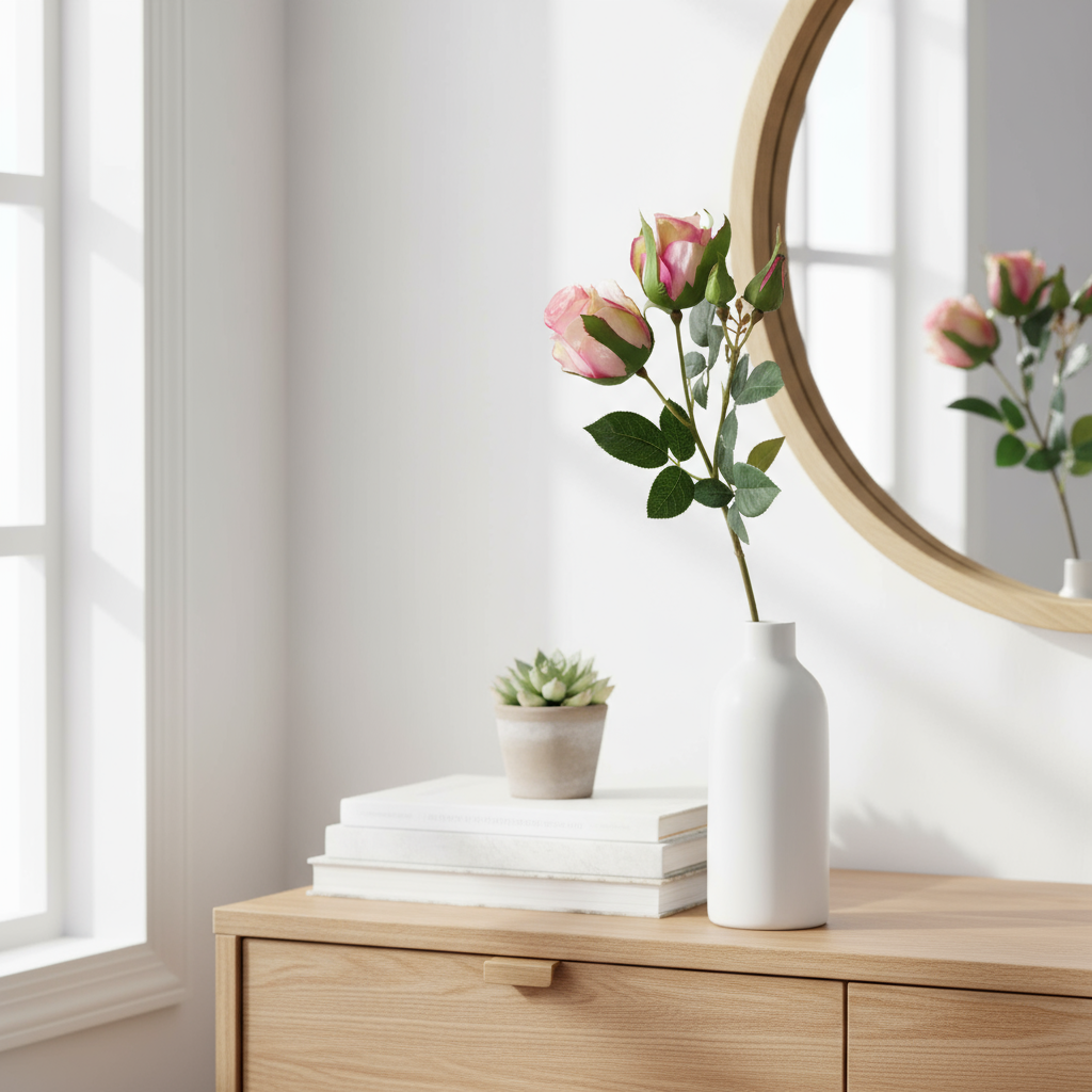 Gi hjemmet ditt et elegant preg med denne vakre rosa kunstige rosen fra Mr. Plant.