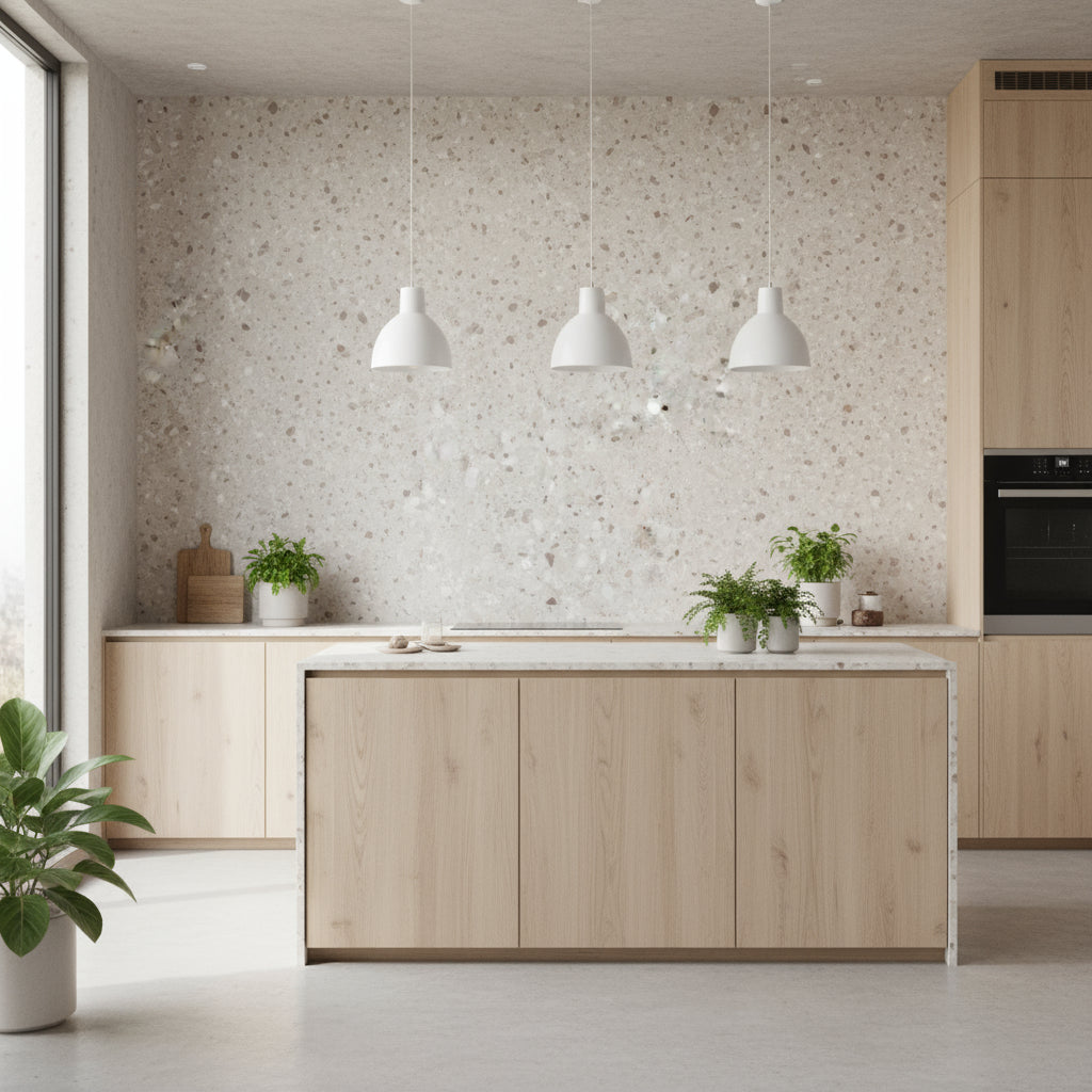 Gi kjøkkenet eller badet et nytt og moderne preg på minutter med Sahara selvklebende fliser. Disse kvadratiske 40 x 40 cm flisene har et varmt, sandfarget uttrykk inspirert av naturlig stein.