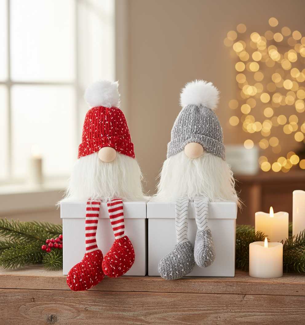 Gjør hjemmet ekstra koselig til jul med Snippy, en sjarmerende sittende tøynisse i tekstil. Med lange ben, myk lue og skjegg, er denne dekorasjonen perfekt på sofaen, hyllen, skjenken eller vinduskarmen.