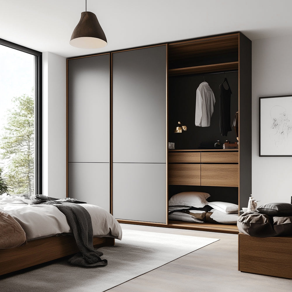 En varm, grå matt kontaktplast som egner seg godt til å fornye slette kjøkkenskap, eldre garderober og mye mer. Den er ofte brukt til å forny skjenker som Bestå fra IKEA.