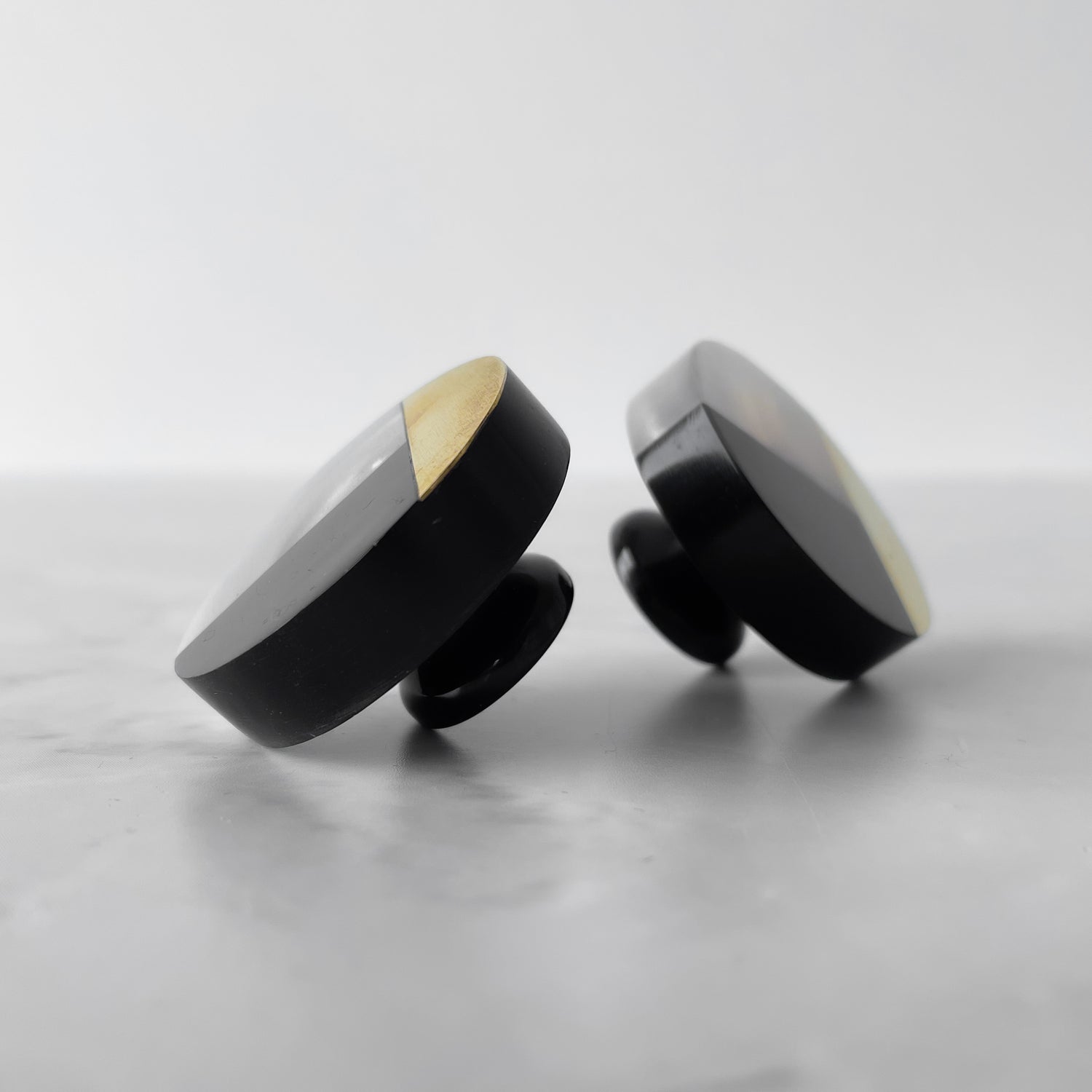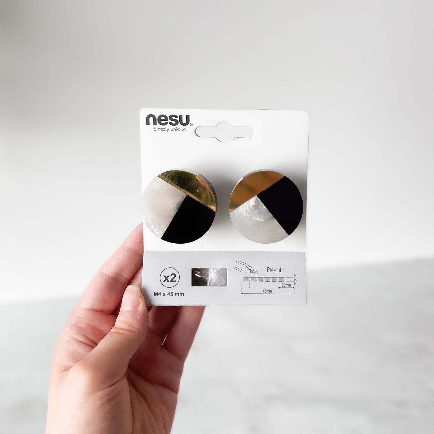 Stlfull knott i sort, hvit og gull med et moderne og unikt design. Passer perfekt til kommoden, nattbordet, garderoben eller kjøkkeninnredningen. Gi møblene din et personlig preg med denne nydelige knotten.