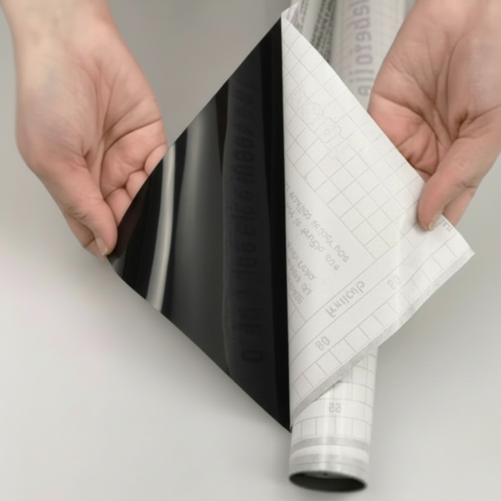 Folien kommer ferdig med lim på baksiden, så det eneste du trenger å gjøre er å fjerne bakpapiret og fest den der du ønsker.
