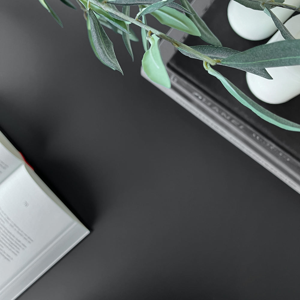 Ensfarget, silkematt kontaktplast i antrasittgrå med kalde undertoner. Ser kjempefint ut sammen med hvit, sort og andre kalde farger. Denne fine folien er genial til å oppgradere kjøkkenskap, IKEA-kommoder, TV-benken med mer.