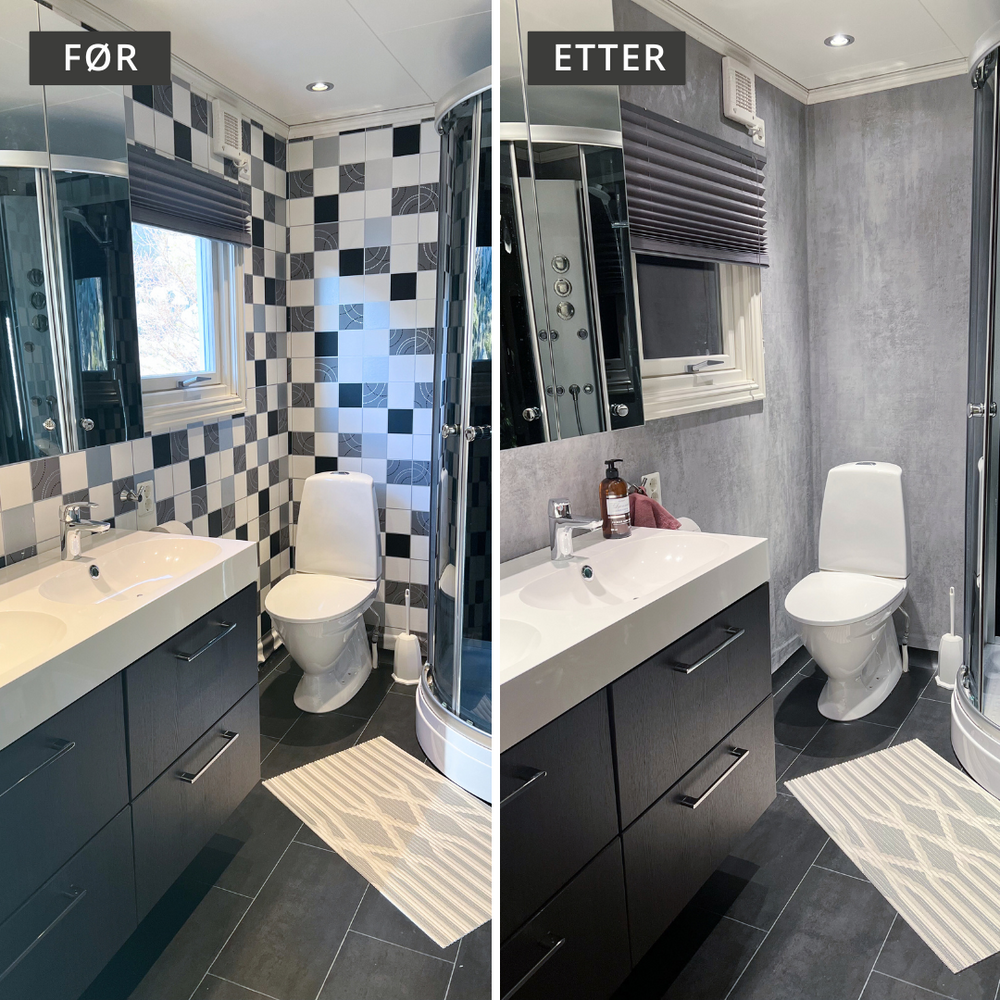 Mikrosement kontaktplast gir en minimalistisk grålig nøytral og industriell karakter. Denne er blitt populær til baderom og kjøkken.