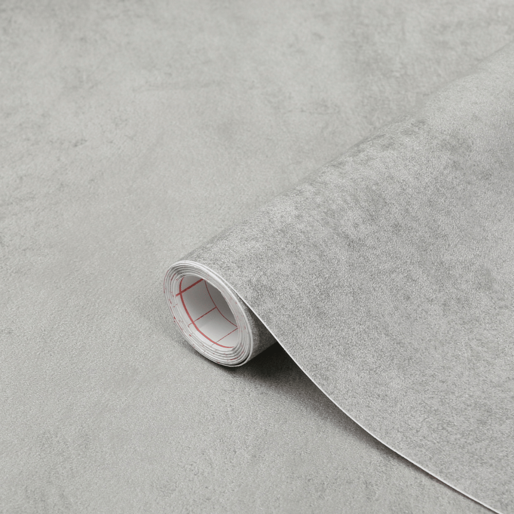 Kontaktplasten har en lys grå overflate med en subtil betonglignende tekstur. Den gir inntrykk av en industriell overflate med en lett struktur som minner om mikrosement eller betong.