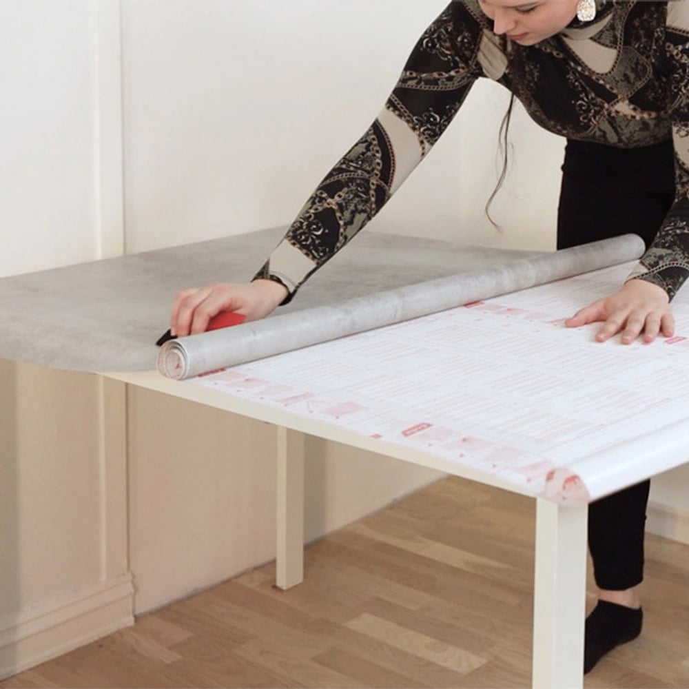 Folien er et populært valg til å fornye bord, kommoder, kjøkkenbenk og vegger på baderom.