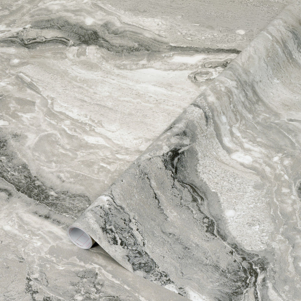 Gi hjemmet en eksklusiv makeover med Iben grå kontaktplast. Denne kontaktplasten imiterer naturlige steinmønstre i vakre gråtoner og gir en elegant, levende overflate.