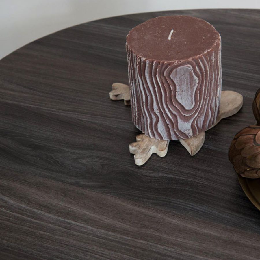 Sangallo lava kontaktplast har en mørk, rik farge med et markert treverksmønster. Fargen ser ut til å være en dyp mørkebrun farge som gir overflaten et moderne og sofistikert utseende.
