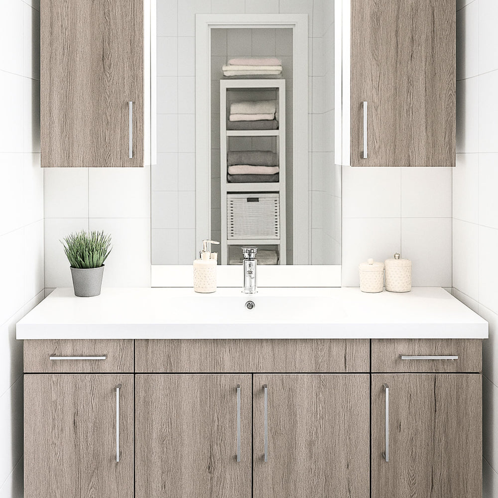 Kjøkkenskap, benkeplate, vegg, garderobeskap, baderomsservant, skrivebord m.m.
