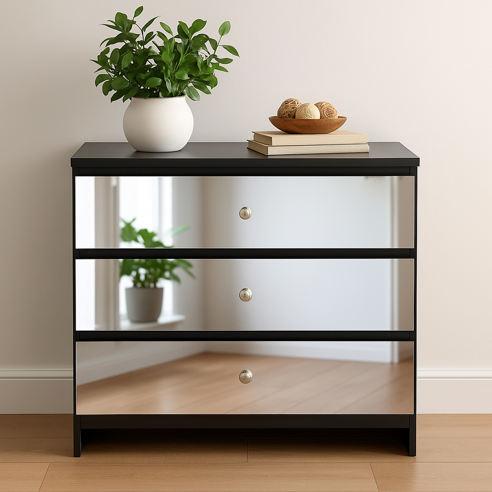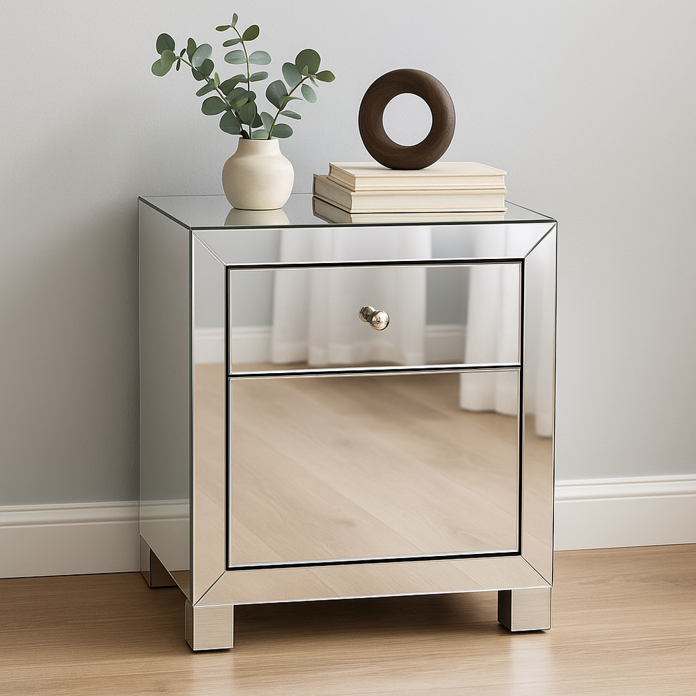 Dekorativ kontaktplast i topp kvalitet. Kontaktplasten er ferdig med lim på baksiden, så det eneste man trenger å gjøre er å fjerne beskyttelsespapiret og fest den der du ønsker. Folien har speileffekt og passer perfekt til å fornye kommode- og nattbordskuffer.