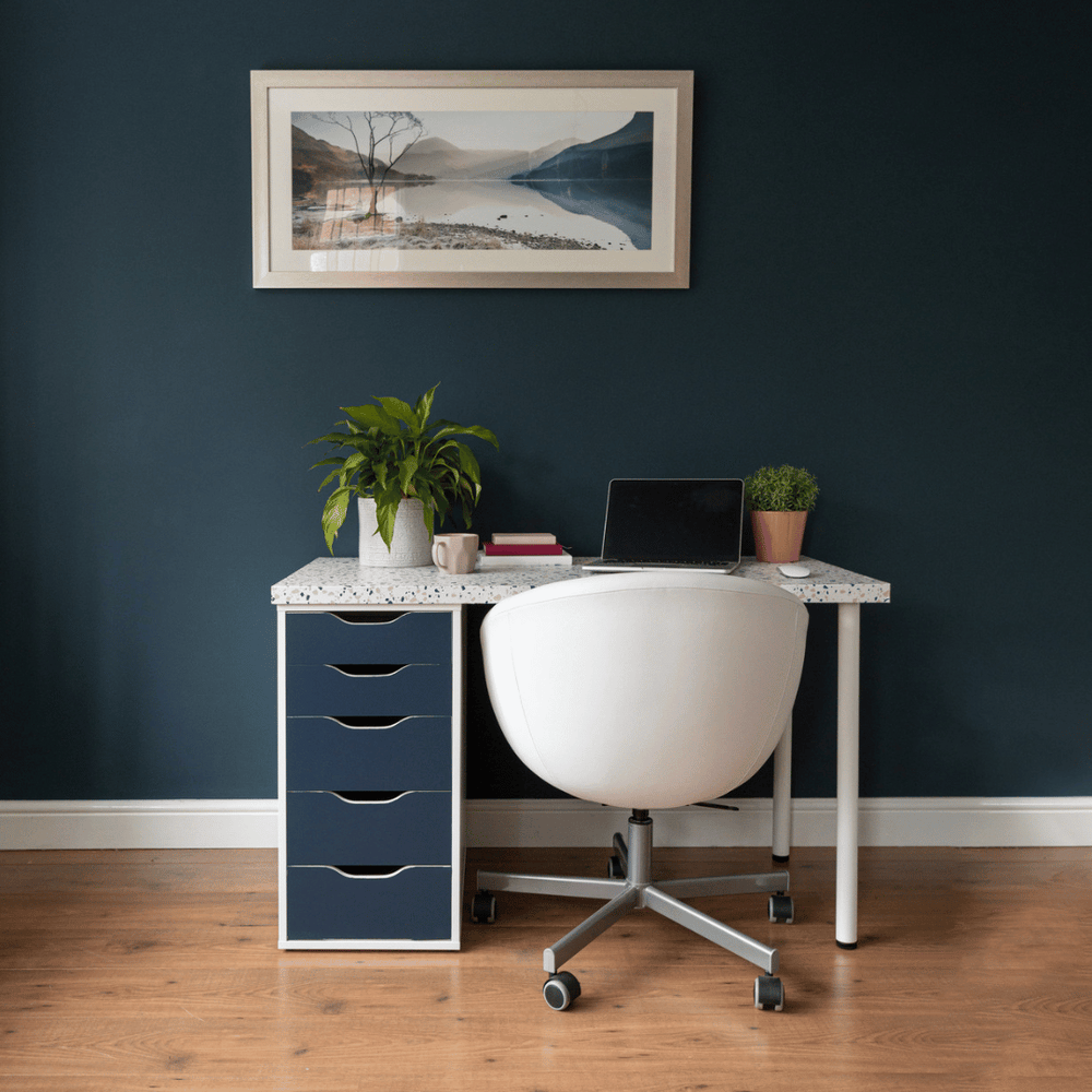 Denne populære folien er ensfarget i dempet marineblå og har silkematt finish. Den passer perfekt til å fornye kjøkken, skap, kommoder m.m.