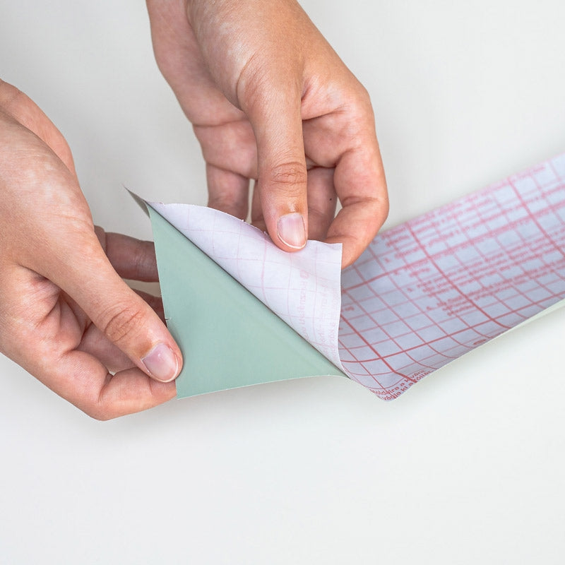 Folien kommer ferdig med lim på baksiden, så det eneste du trenger å gjøre er å fjerne bakpapiret og fest den der du ønsker.