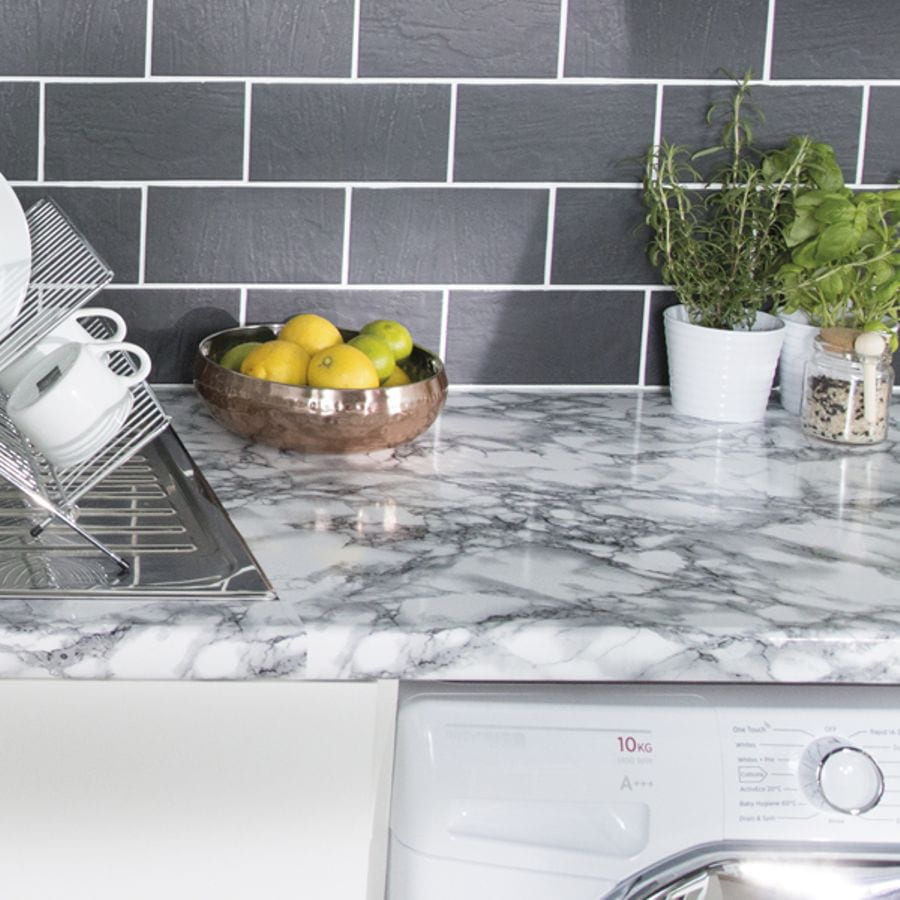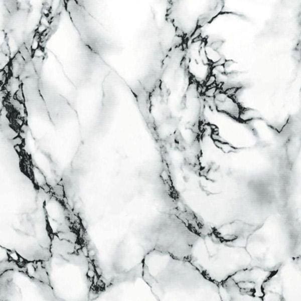 Marmor sort/hvit kontaktplast har et designt med hvit marmorlook med dramatiske sorte og grå årer.