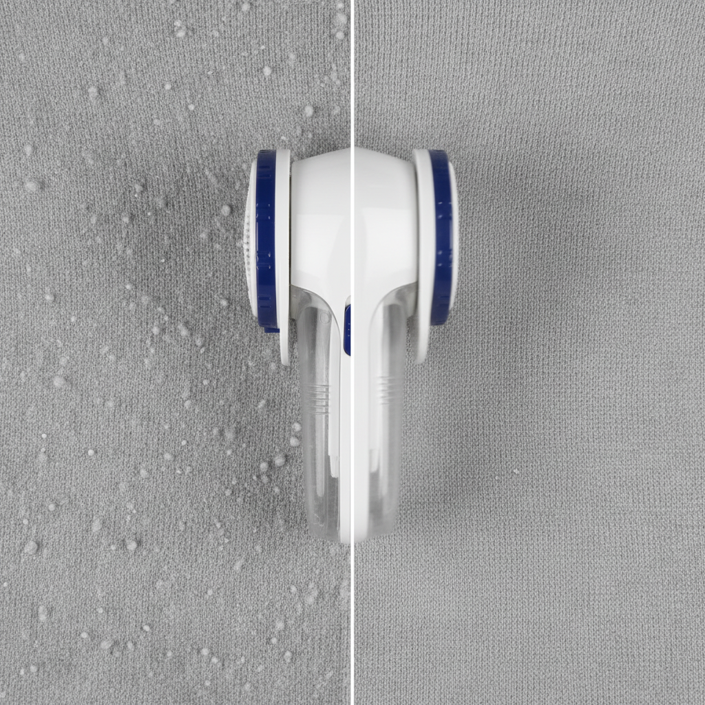 Den er enkel å bruke og jobber raskt over alle typer stoff. Batteridrevet funksjon og roterende knivblad i rustfritt stål gir effektiv og skånsom fjerning av nupper og lo uten å skade materialet. Justerbar beskyttelse gjør at du trygt kan bruke den også på mer sensitive plagg.