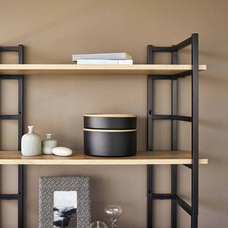 2-pk oppbevaringsbokser rund med lokk sort