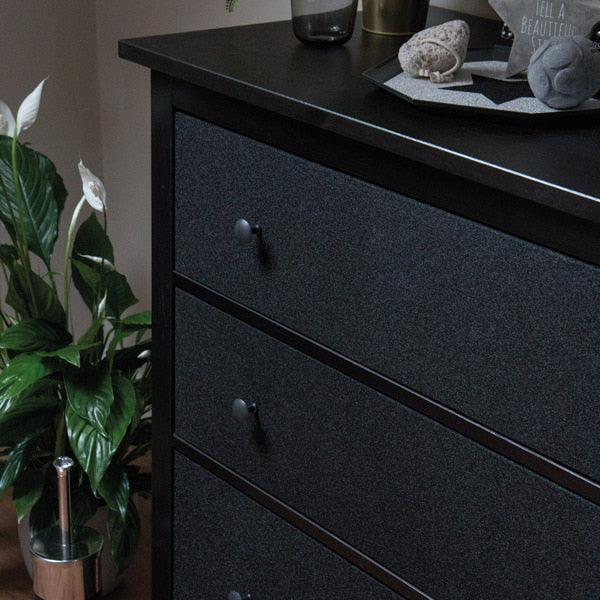 Glitterfolien egner seg best på små overflater som ikke har mye bruk, for eksempel forsiden av nattbordsskuff eller kommoder.