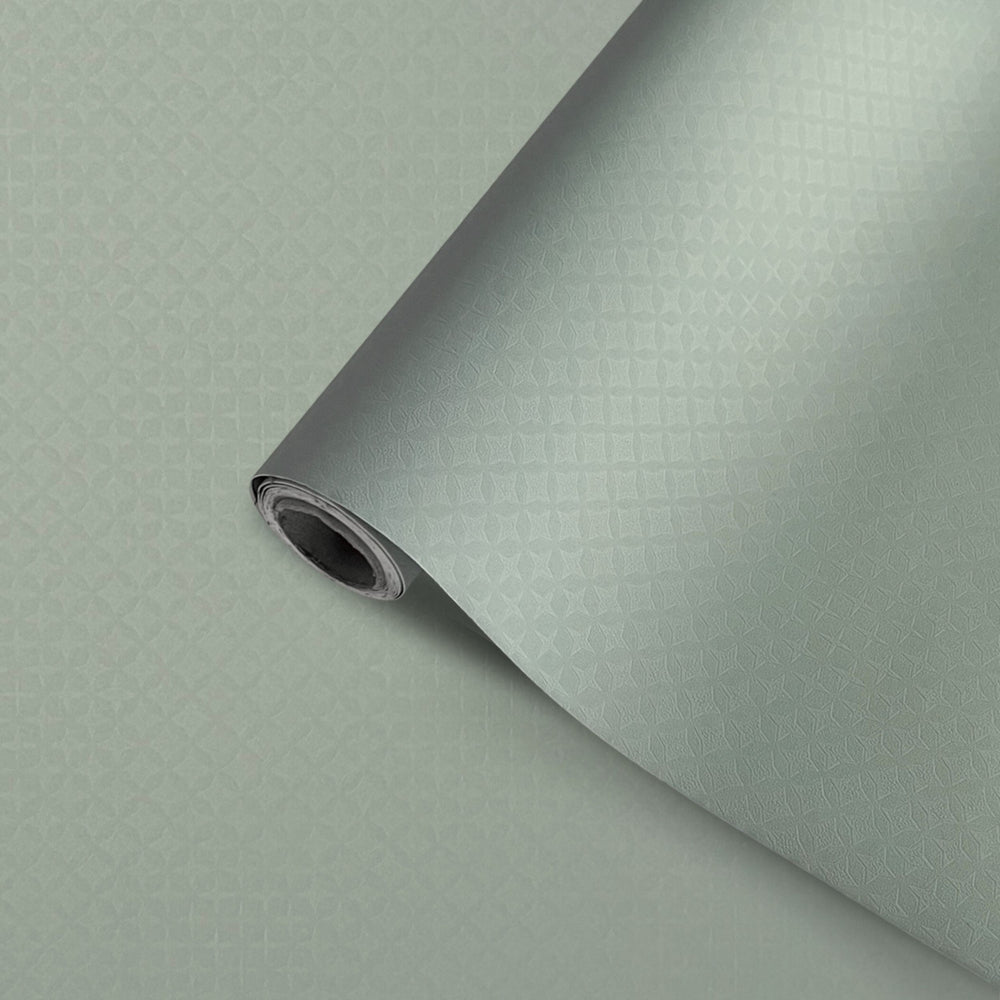 Nova green selvklebende tapet er en moderne, ensfarget tapet med et unikt mønster som gir rommet et sjarmerende og tidløst utseende. Perfekt til å fornye vegger, tak og møbler.