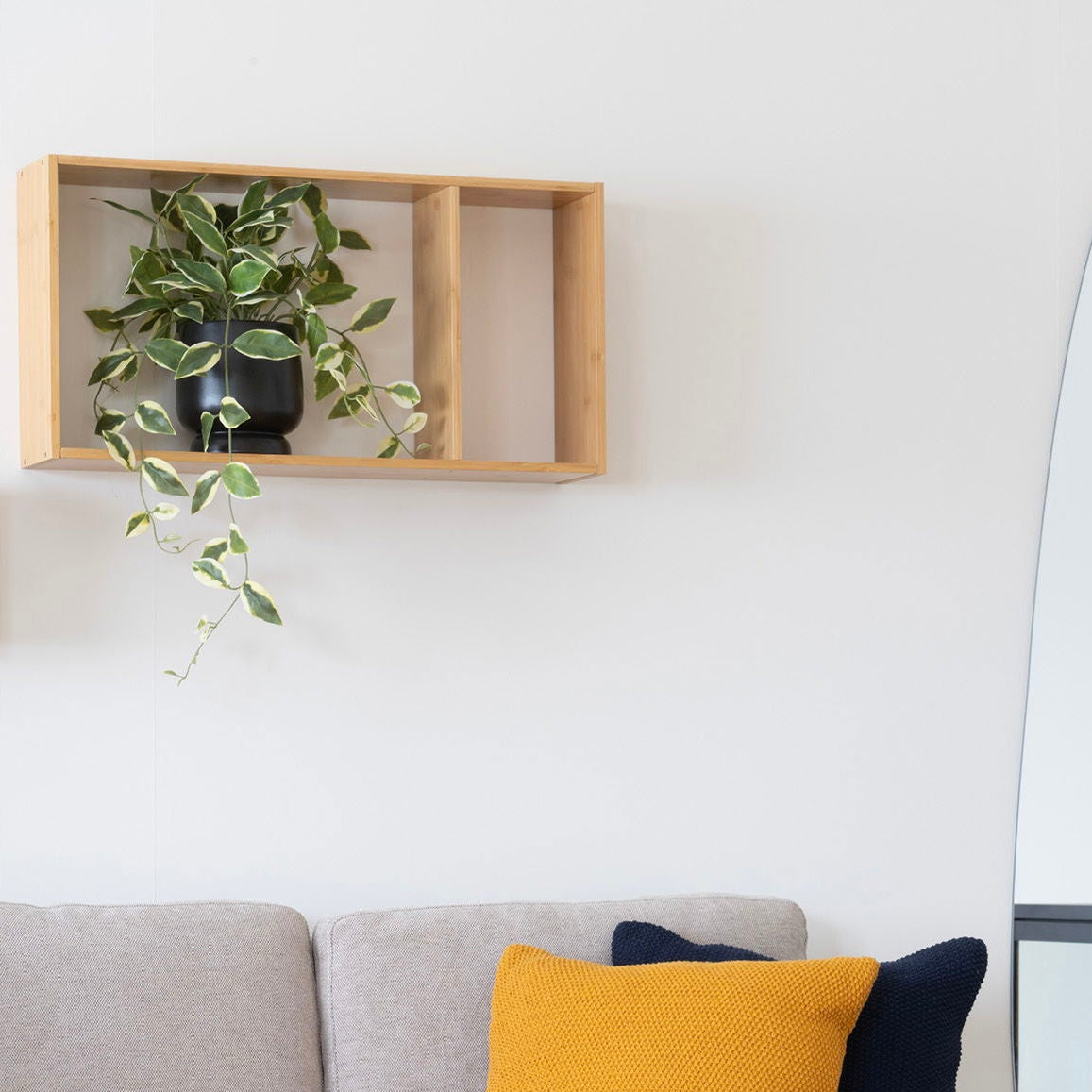 Gi veggen et varmt og naturlig uttrykk med Ember vegghylle i bambus natur. Med 70 cm bredde, 35,5 cm høyde og 15 cm dybde passer hyllen perfekt over sofa, i gang eller på kjøkken der du ønsker dekorativ oppbevaring uten at løsningen bygger for mye ut. Den slanke dybden gjør den ideell i smalere rom.