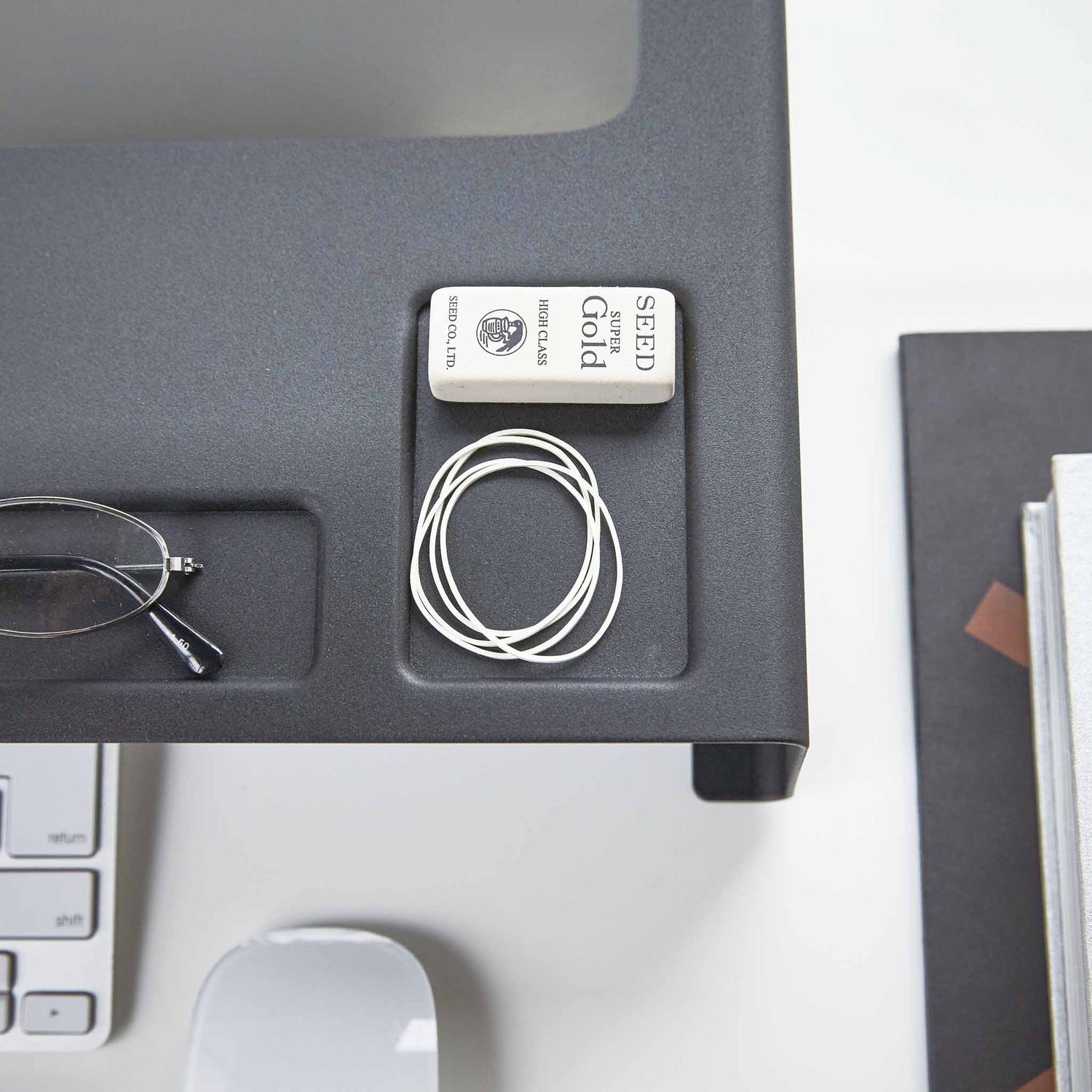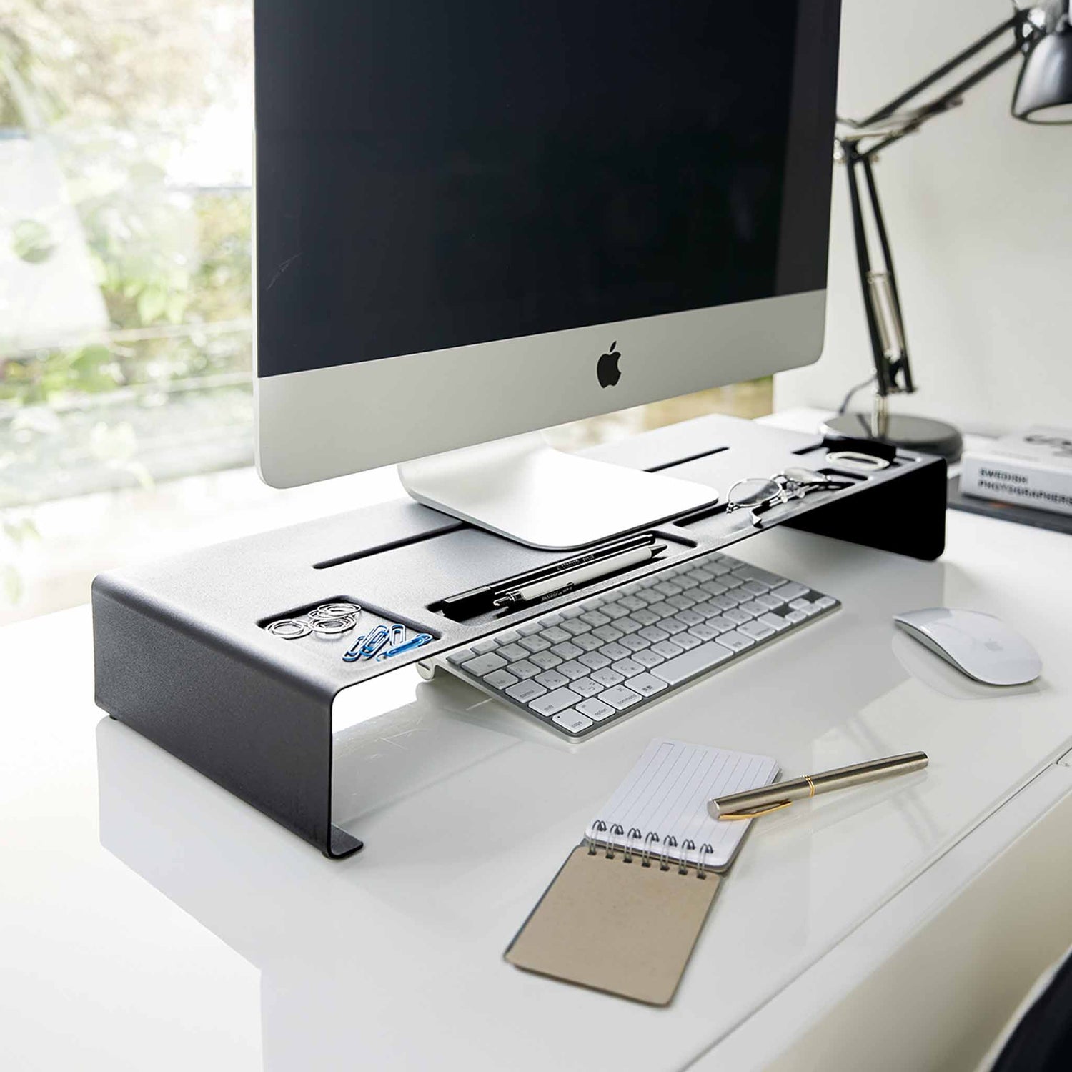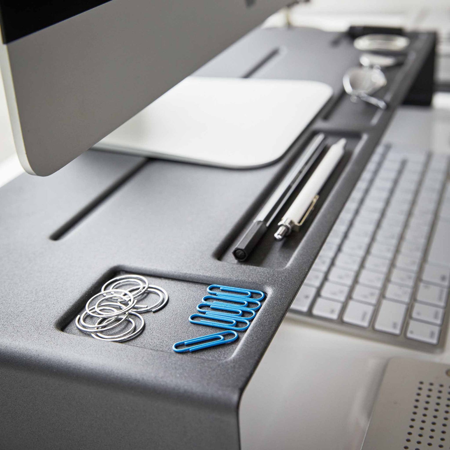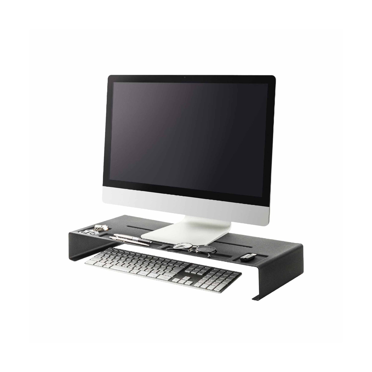 NÄr skrivebordet er ryddig blir arbeidsdagen mer effektiv. Dette skjermstativet lÞfter skjermen opp fra bordflaten og gir samtidig praktisk plass til oppbevaring av smÄ kontorartikler.