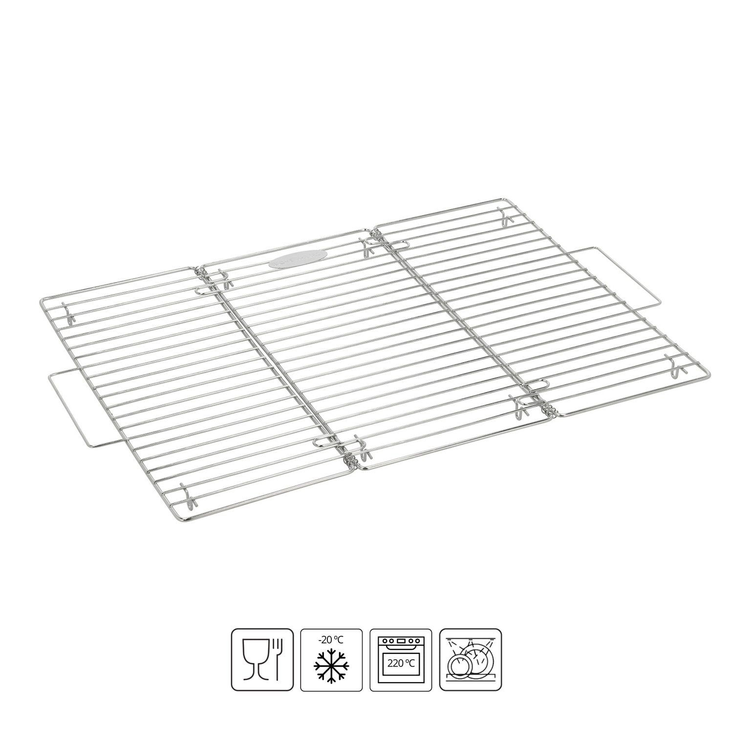 Risten måler 48 x 32,5 cm og gir god plass til flere brød eller et helt brett med småkaker. Den solide stålkonstruksjonen tåler temperaturer opp til 220 grader og ned til 20 minusgrader.