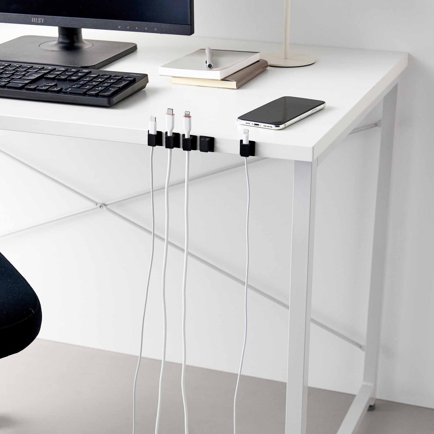 Når ladekabler og små ledninger sklir bak bordet eller blir liggende i veien, føles arbeidsplassen fort mer rotete enn den trenger å være. Med disse sorte magnetiske kabelholderne får du en enkel løsning som holder kablene samlet, tilgjengelige og pene å se på.