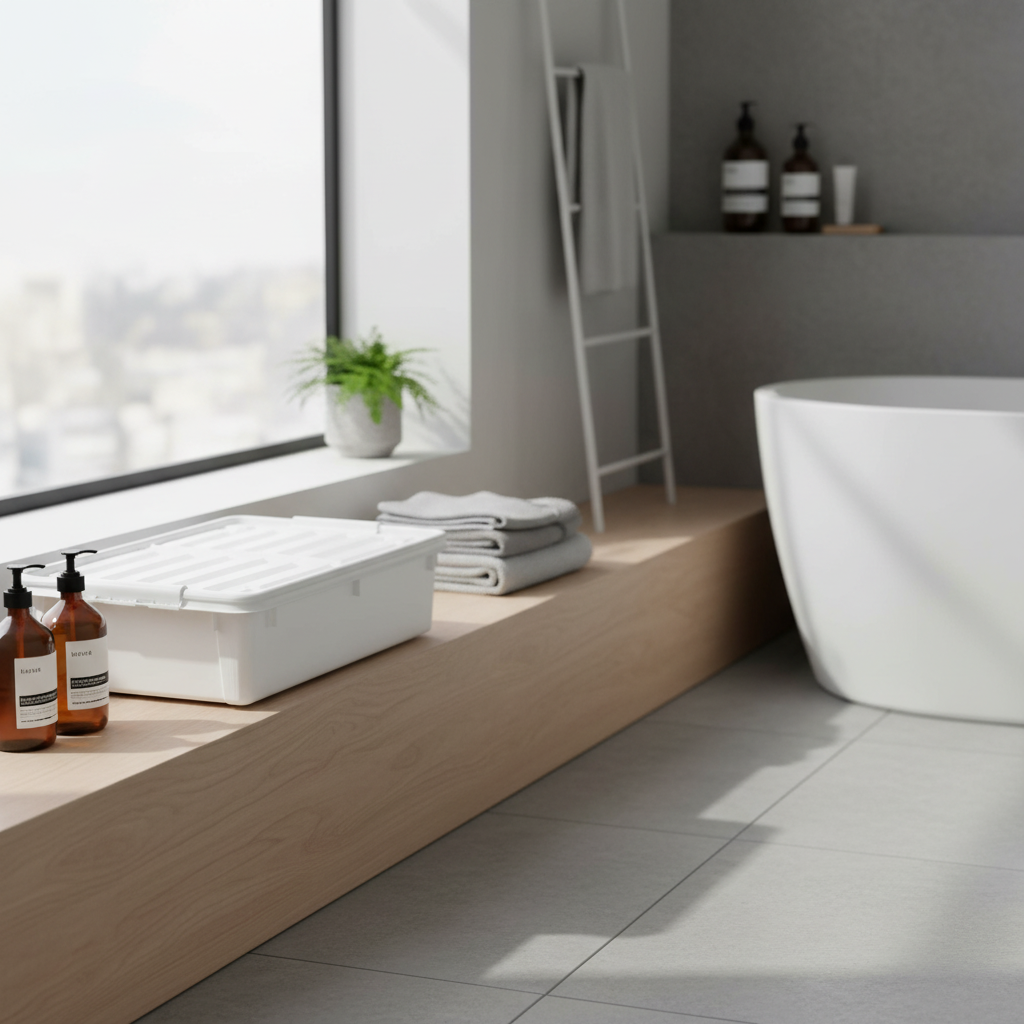 Det transparente lokket gjør det lett å se hva som ligger i boksen, mens solide klips holder lokket trygt på plass. Lokket kan åpnes selv når boksen bare trekkes delvis ut, noe som gjør den praktisk også i trange rom.