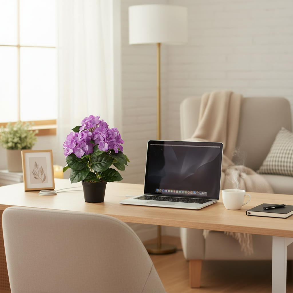 Gi rommet et friskt uttrykk med Mr. Plant Hortensia, en naturtro kunstplante med store blomsterhoder i lilla og flotte grønne blader. Planten gir et fargefult preg og passer perfekt for deg som ønsker dekor som ser ekte ut uten behov for stell.