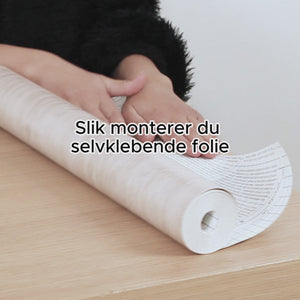 Folien kommer ferdig med lim på baksiden, så det eneste du trenger å gjøre er å fjerne bakpapiret og fest den der du ønsker.