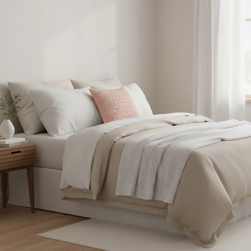 Trekket er laget av myk og slitesterk polyester, og er utstyrt med skjult glidelås for et rent uttrykk og enkel håndtering.