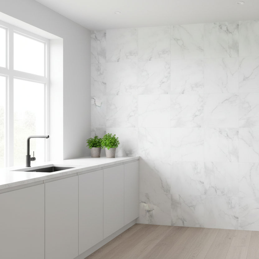 8-pk Athena hvit marmor selvklebende fliser