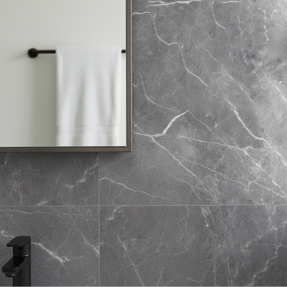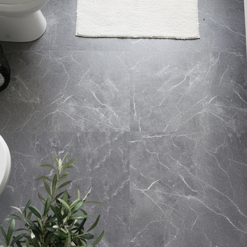 Firenze selvklebende fliser har et marmorinspirert design i gråtoner med hvit marmorering. Mønsteret er inspirert av klassisk stein og passer godt i rom der du ønsker et mer eksklusivt uttrykk.