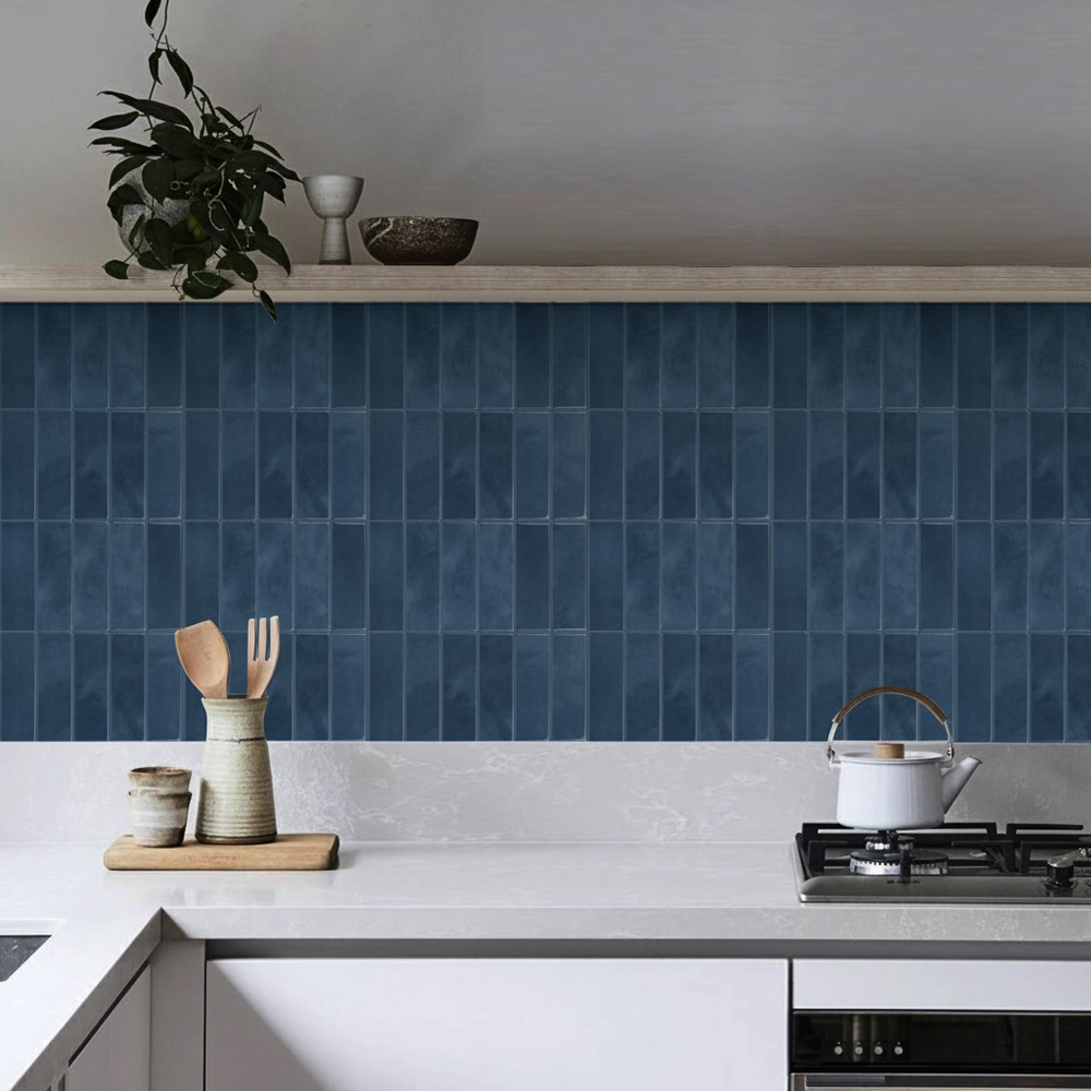 Våre selvklebende fliser har en realistisk, glossy overflate som gir en ekte flisfølelse. De kommer i et klassisk rektangulært design med subtile nyanser av blått, som gir en følelse av dybde og karakter til veggen din. Installeringen krever ingen verktøy eller ekstra lim, bare fjern beskyttelsesfilmen og fest flisene direkte på en ren og tørr overflate.