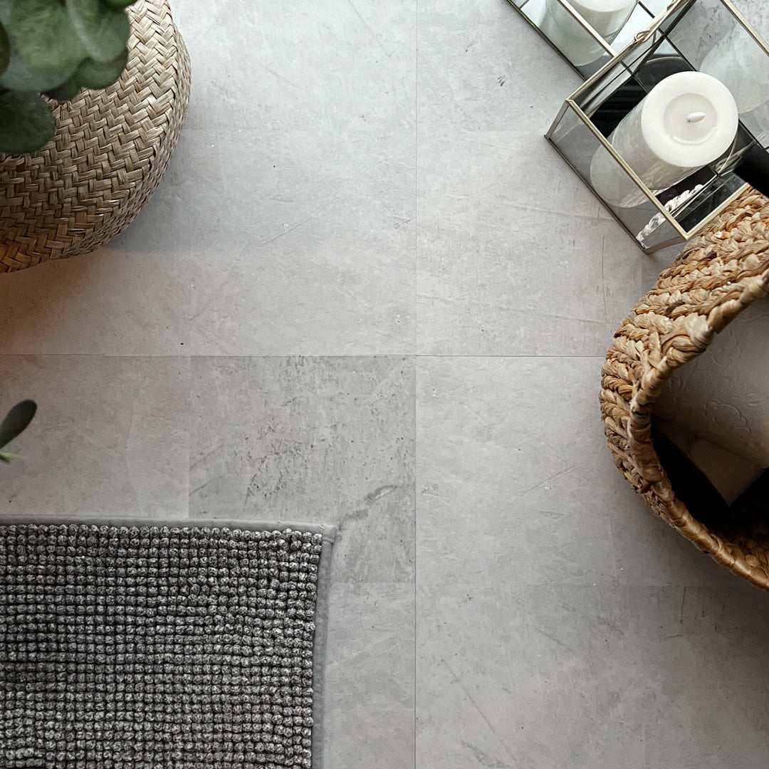 Amsterdam selvklebende fliser gir hjemmet et moderne og tidløst uttrykk med sin lyse grå betongfinish. Den nøytrale fargetonen gjør flisene enkle å kombinere med både varme jordfarger og kjølige skandinaviske nyanser. Hver plate er delt inn i fire subtile kvadrater som gir en realistisk flisfølelse med et minimalistisk preg.