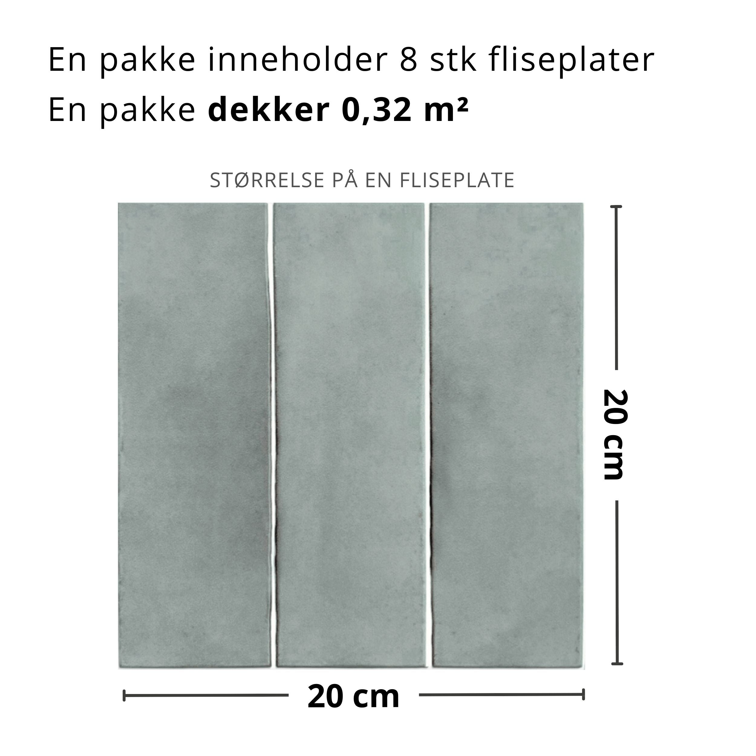 Katja betong selvklebende fliser er inspirert av håndlagde Zellige-fliser og gir veggen et moderne uttrykk med realistisk 3D-effekt. Den matte betongoverflaten skaper et naturlig og levende utseende som passer perfekt i både klassiske og moderne rom.