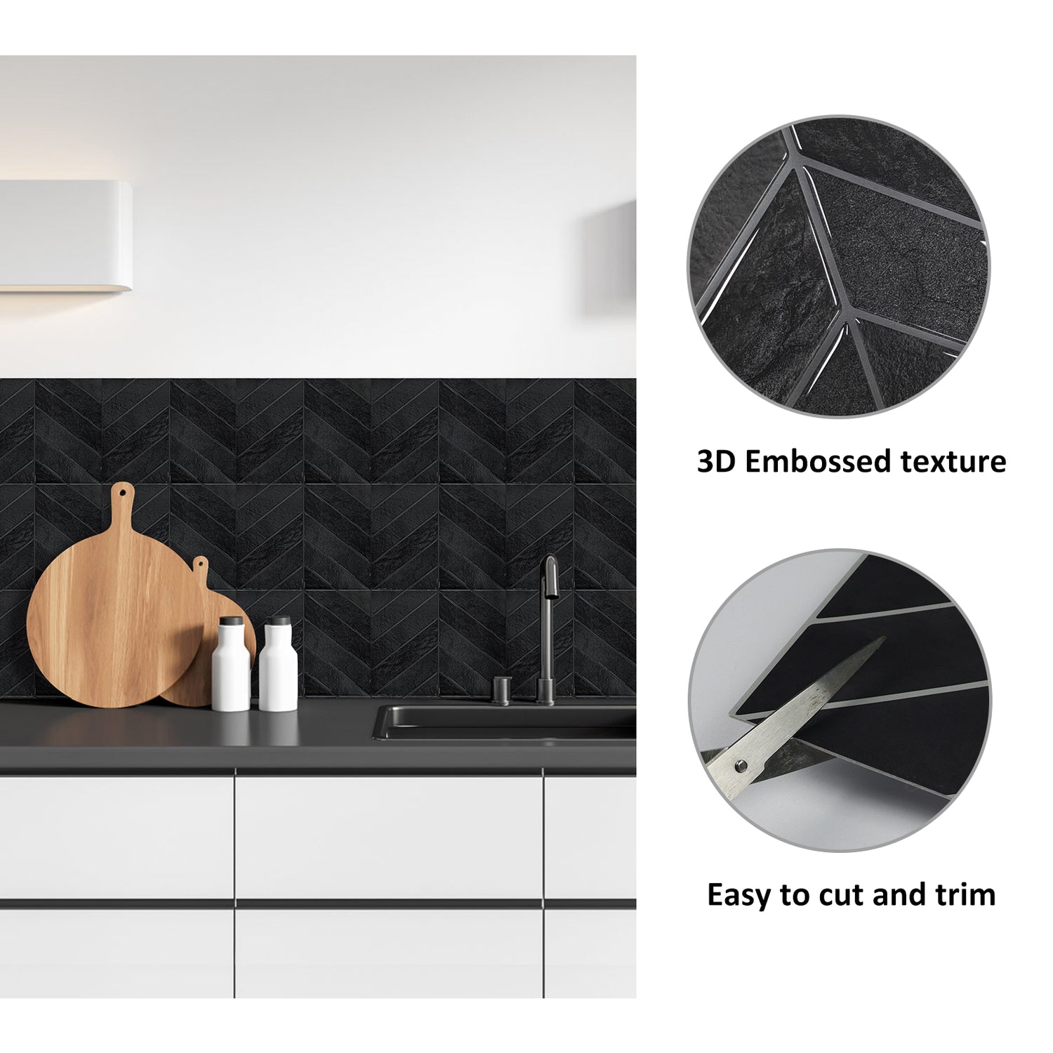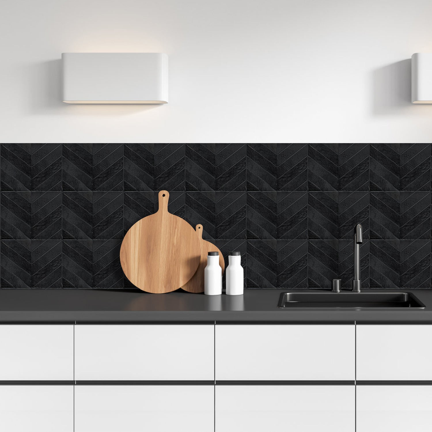 Vareprøve: Evelina sort selvklebende veggfliser