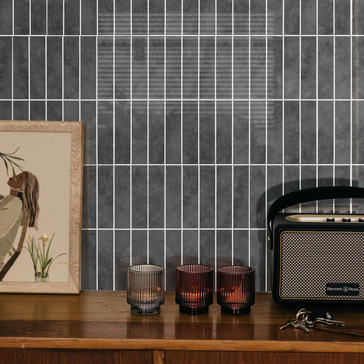 Vareprøve: Alma gloss antrasitt selvklebende veggfliser