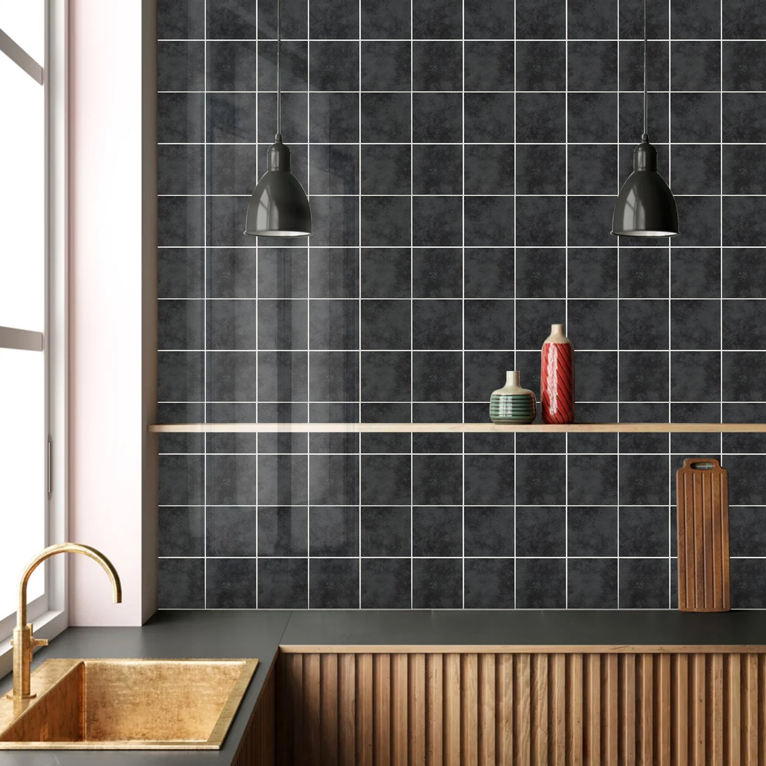 Vareprøve: Melina antrasitt selvklebende veggfliser