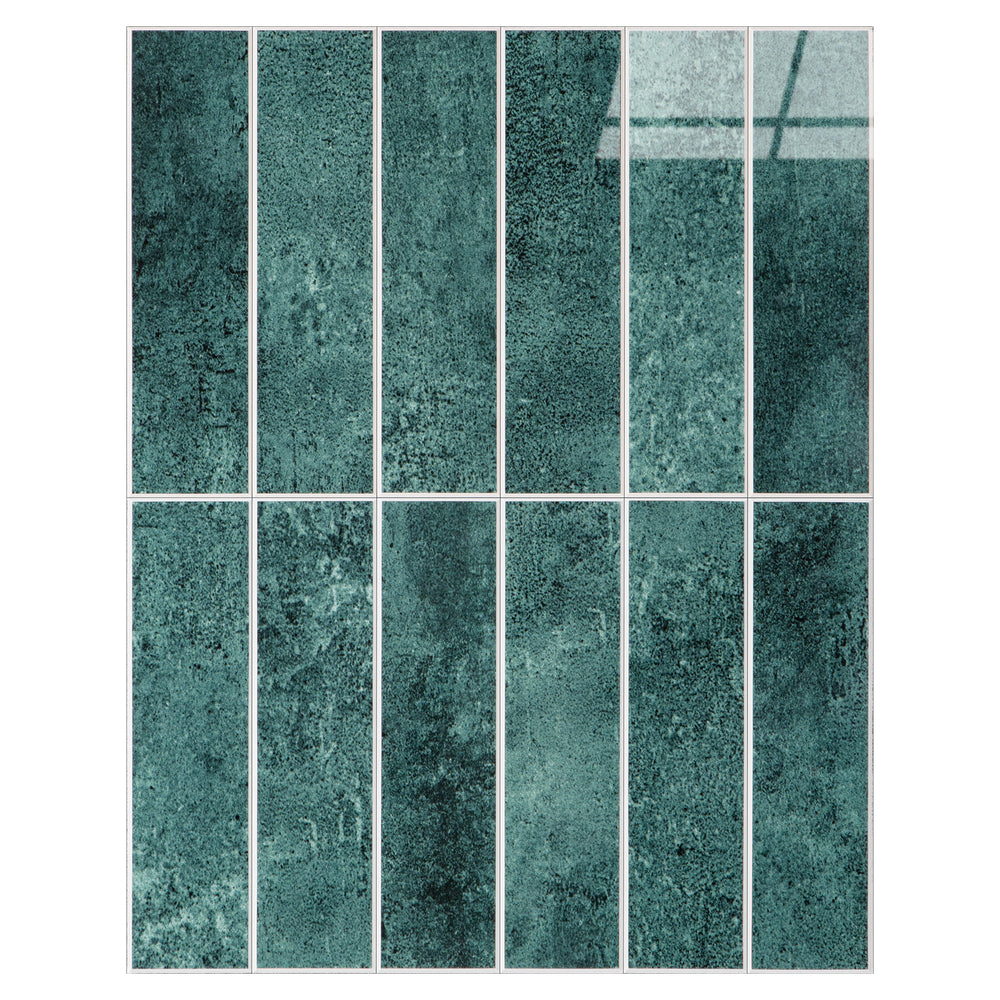Selvklebende grønne veggfliser med avlange rektangulære ruter og glansfull overflate – moderne fliser til kjøkken og bad.