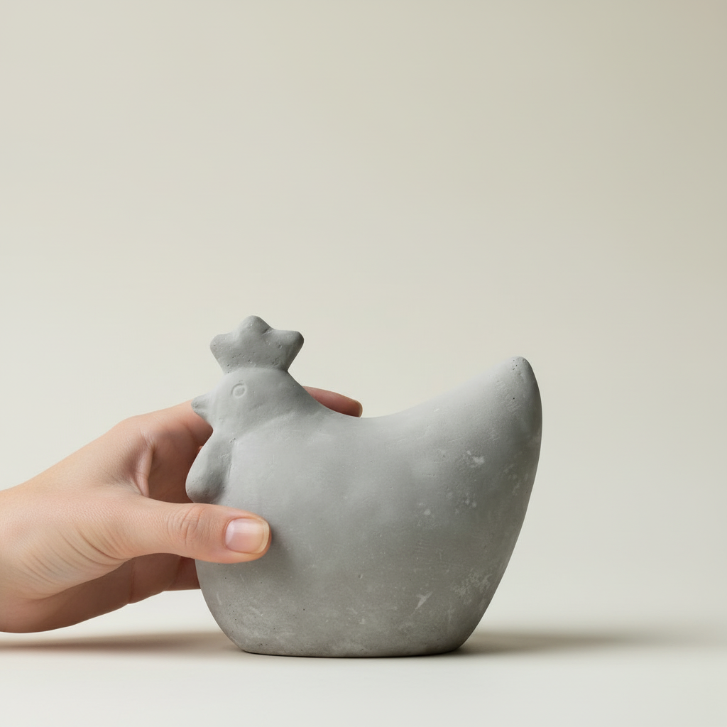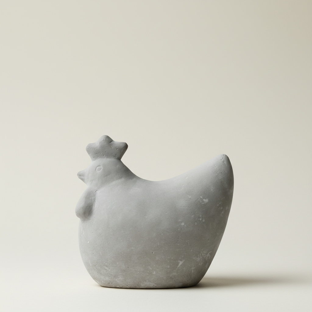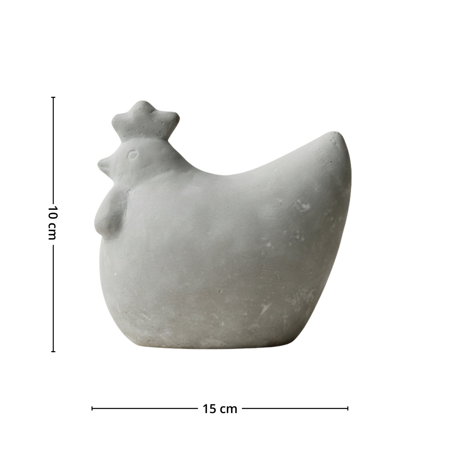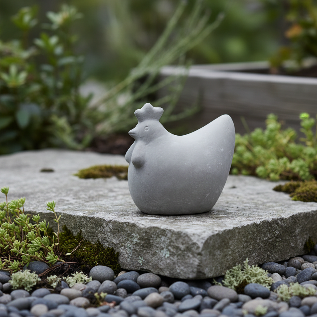 Du får en dekorhøne i solid betong, 14 cm høy og ca. 15 x 10 cm, med en matt grå overflate som passer perfekt sammen med stein, tre og grønne planter. Den står stødig og fungerer like fint alene som sammen med flere figurer i ulike størrelser.