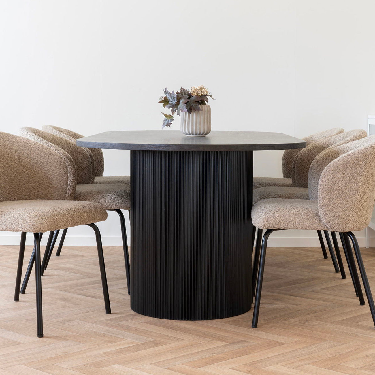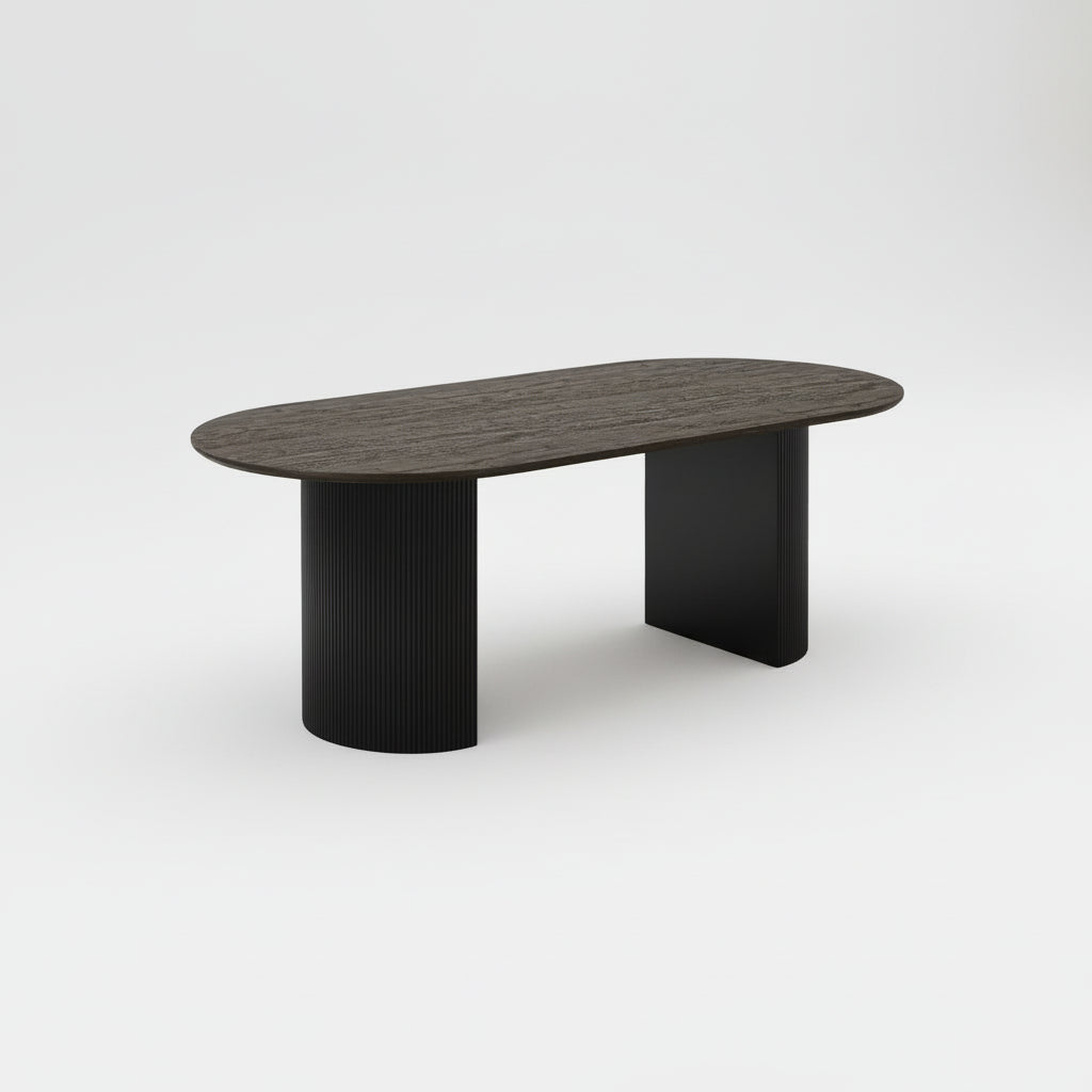Boavista spisebord 210 cm i mørk brun fra det danske merket House Nordic gir spiseplassen en moderne stil. Den ovale bordplaten gjør det enkelt å samle familien, mens de to søylebena gir bordet et stabilt fundament og et stilrent preg.