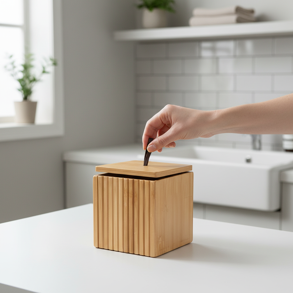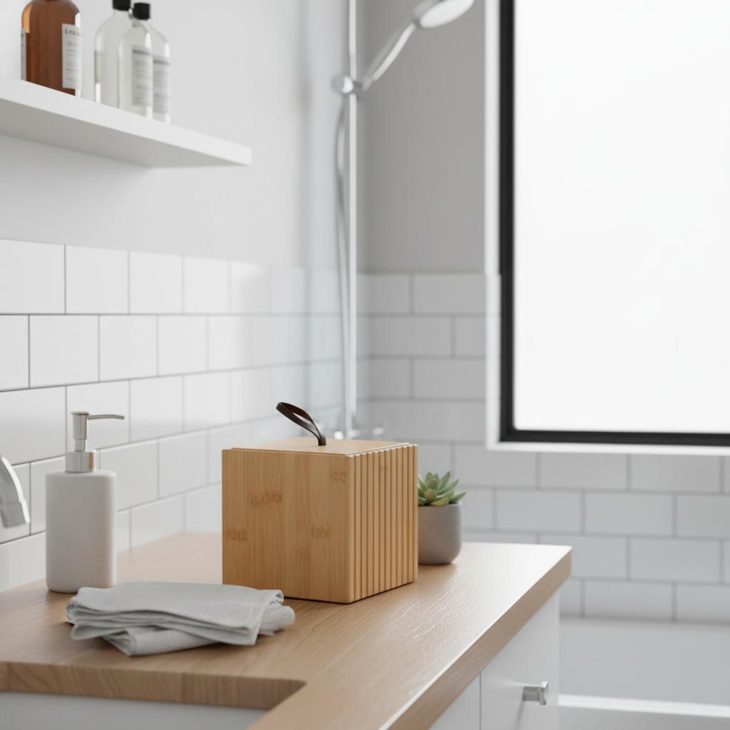 Boks bambus m/skinnstropp 9 x 9 cm