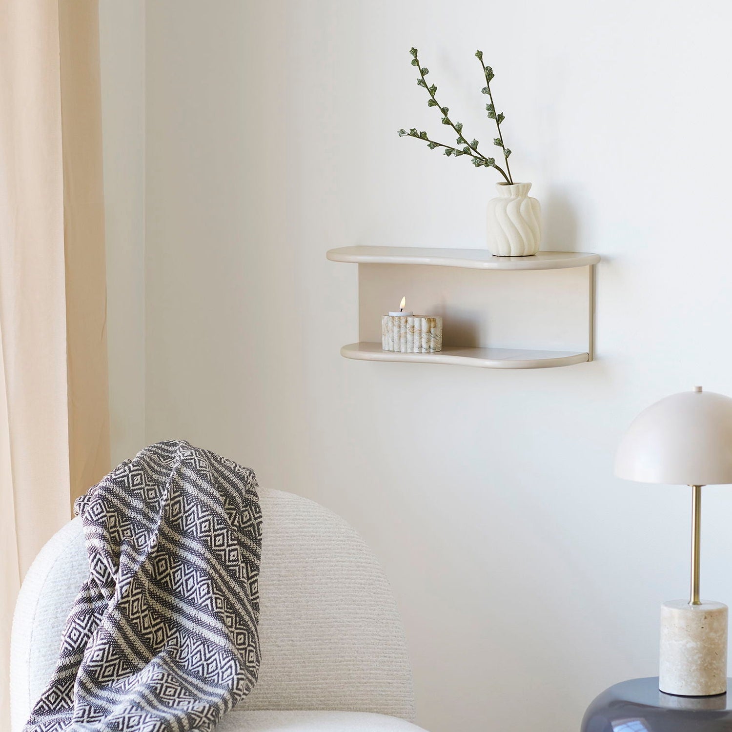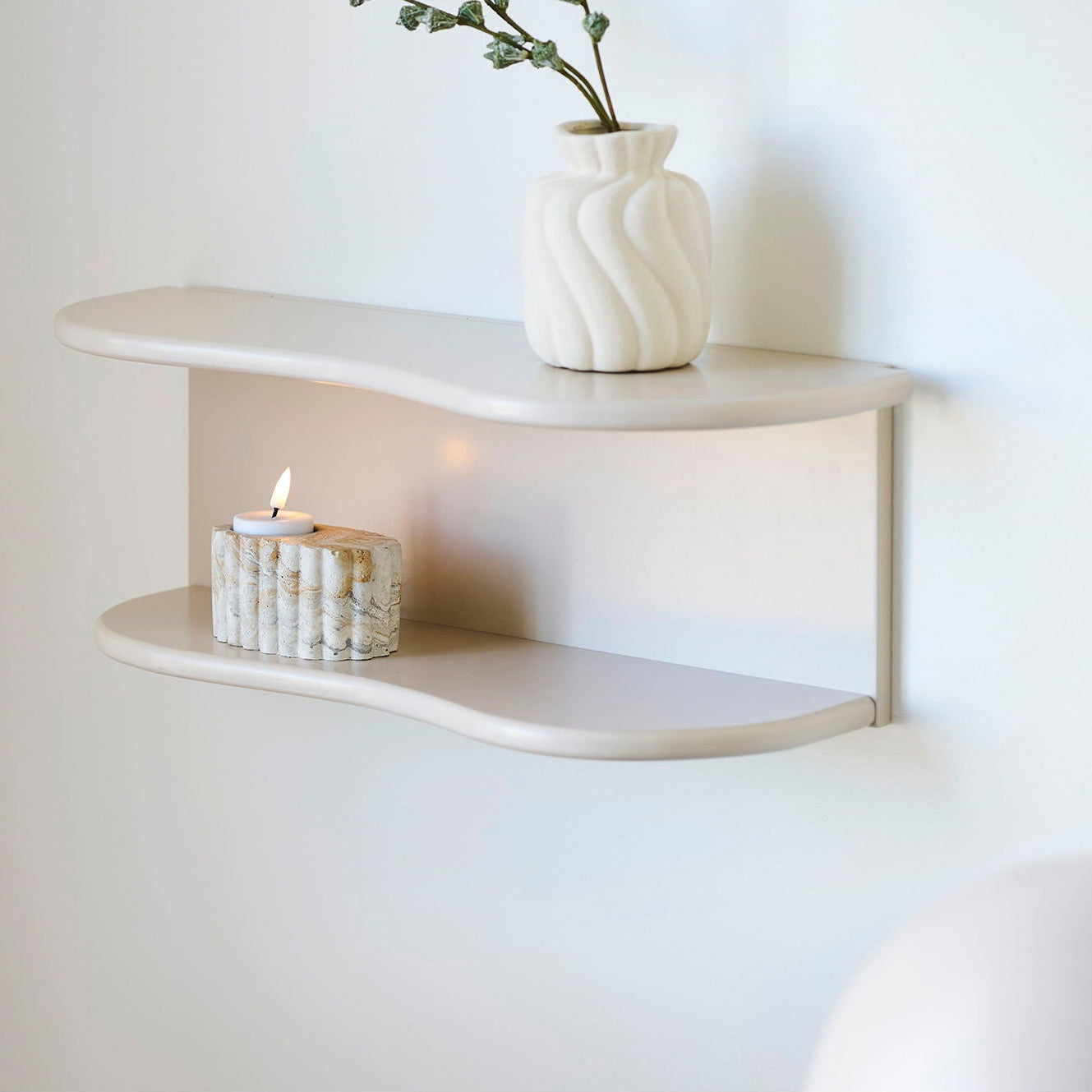 Botta er for deg som vil ha en vegghylle som ser rolig ut, men fortsatt gjør en tydelig jobb i rommet. Den myke, avrundede formen gir et behagelig uttrykk på veggen, og den lille kanten gjør at stylingen holder seg på plass.